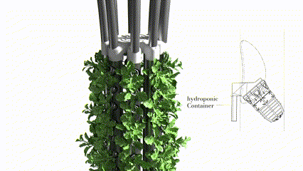 By merging sustainable technology with spatial design, the project offers a self-sufficient ecosystem that supports food production, education, and social connection within the city.